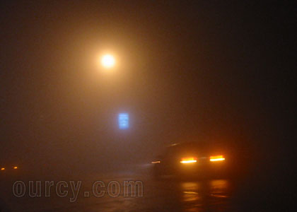 今日白天一场蒙蒙细雨无声润泽,静悄悄的下了一天,入夜时分,湿润的大气在严寒中营造出一场罕见大雾。天水路上夕日通明的路灯竟然朦胧的看不清路灯轮廓,没有路灯的路段,开大灯驱车能见度不过三米,根本不可能看到路两旁的建筑,可以说直接无法行驶,车行路口,无法分辨侧向是否有车辆驶来。部分街道上,路灯的灯光还没来得及传输到路面,就被大雾“半路侵吞”了。