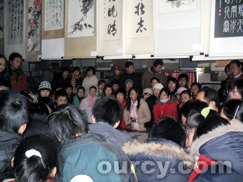 12月21日上午,在庆祝中国书画函授大学昌邑函授站建站20周年书画展上,几位即兴写字作画的学员引来了不少市民驻足围观。