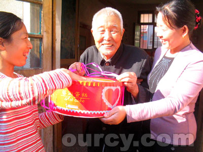张家车道村一直有着敬老尊老爱老的优良传统,从上个世纪80年代以来,该村就以不同的形式对村里的老人们表达着关怀。近10年来,村里每年都对所有年龄超过80岁的高寿老人进行生日登记,并在当天由村委工作人员代表全体村民进行走访慰问,送上生日蛋糕及生活经费等生日礼物。目前,村里已为20多位老人送上了300多份这样的生日礼物。