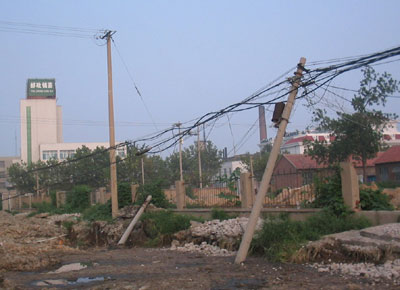 一位正在参与现场处理的通信工作人员告诉记者,这些倒下的通讯杆需要修复也得需两天时间,此处马家村一带和附近几个企业的固定电话将无法使用。这次事故,牵扯了供电、网通及有线电视三家,估计经济损失不少于4万元。