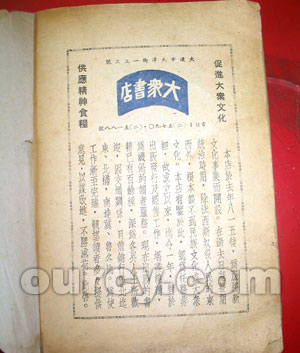孙先生说他在废品站收“淘宝”时一眼就看到了这本书,尽管已经没有封面,但因其是建国前的版本,便立刻花元钱买下了。这本《毛选》是大众书店的再版本世,此前1946年8月出版的应为该版的最早版本。