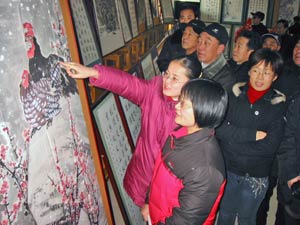 2月18日上午,在昌邑市书画展厅室内,一幅《雄鸡报春图》吸引了人们的目光。当天,昌邑市老年大学、国画院、文山诗书社共同举办以庆祝鸡年新春为内容的书画大联展,从社会各届人士一千多幅书画作品中,挑选出120余幅书画作品进行展出。精美的书画作品带给观众新春的祝福,为节日增添了浓厚的文化气氛。