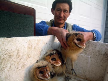 11月16日,一位老农在昌邑金丝达公司流青园内割草时,忽然听见了一阵“嗤嗤”的声音,还以为是遇上了蛇。走近仔细一看,草丛中有三只大小相近的怪鸟:猴面、鹰嘴、鹰身。老农拿袋子把三只怪鸟送到了该公司,但却无人认识此鸟。