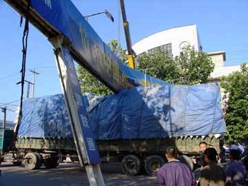 上午8点多,两辆吊车开进现场,合力将该广告牌吊往别处后,对该路段进行了抢修。