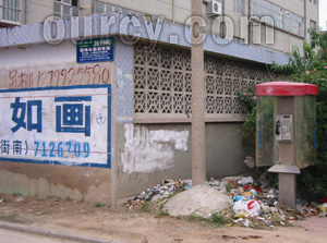 这是我们的市政公司门前的一个镜头,看起来颇有点讽刺意味,如此现场是不是体现了我们的市政部门先人后己的风范?不知道这墙面广告上写的“如画”是否指的是这个“环境幽雅”的电话亭的景象,反正再甜蜜的电话只要在这里打,恐怕很难有好的心情。