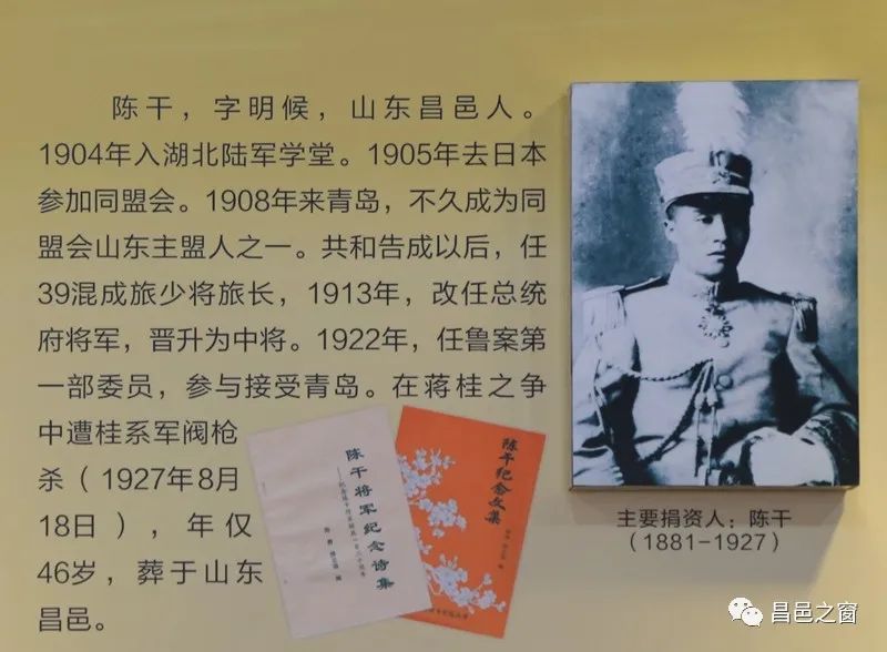 陈干(1881-1927),字明侯,1881年12月13日生于昌邑市白塔村。中国民主革命先驱,北伐将军。