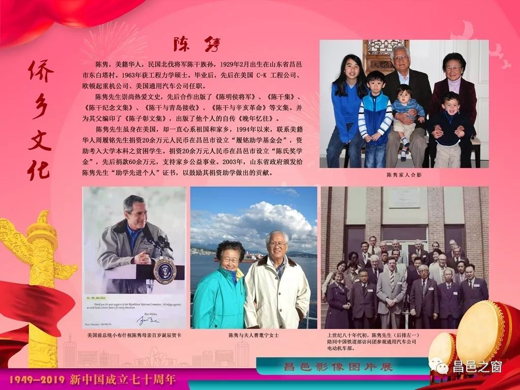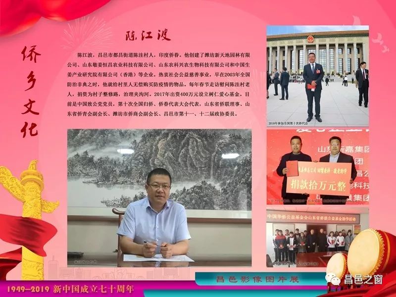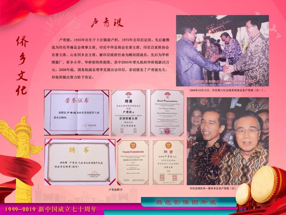 在该次影展活动中,还展出了部分华侨及侨属图文档案,通过一位位胸怀祖国、心系故乡的华人华侨以及侨属对故乡的贡献,展现了侨乡昌邑“乡情即纽带,坦途通四方”的侨民资源。