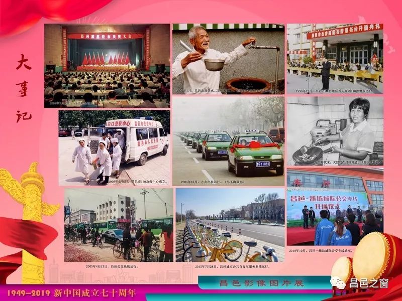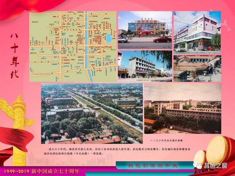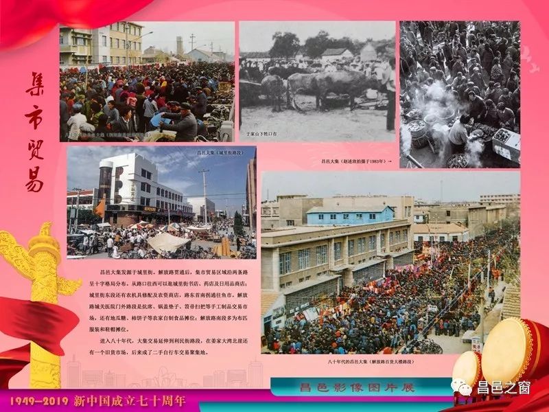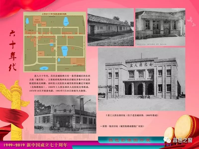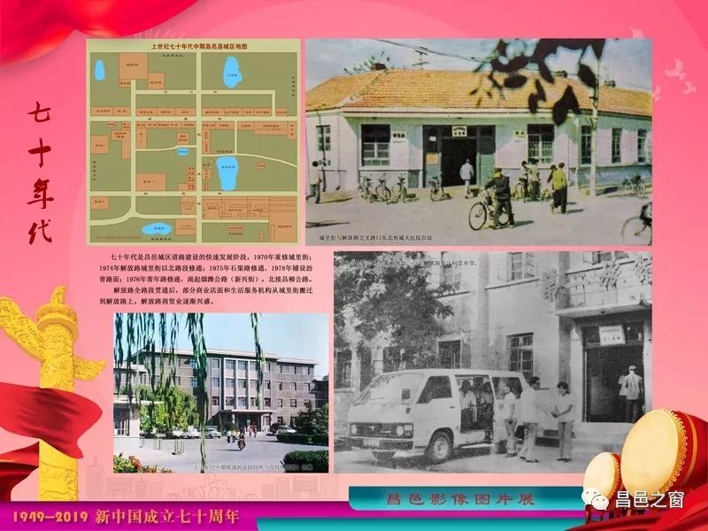 本次展出的百余幅历史影像图片是从昌邑之窗二十年来收集的数千张老照片中遴选出来的,影像年代跨度从1949年到2019年。在上世纪五十年代,昌邑还是一座仅有一条街道横穿城区的小城;七十年沧桑巨变,今天的昌邑市区已经迈入了跨潍河发展的新时代。这些老照片以影像的形式展现了我市七十年来在居所、购物、教育、交通、工业、农业等方面的变化和发展。