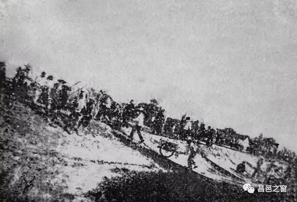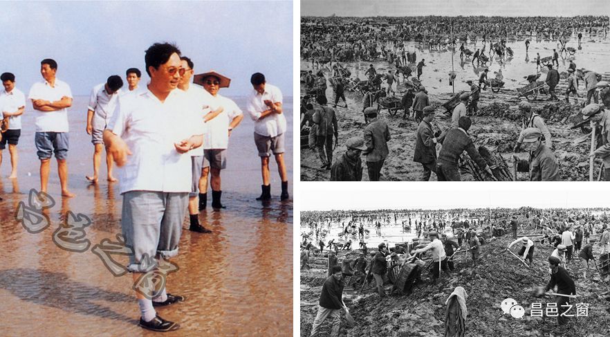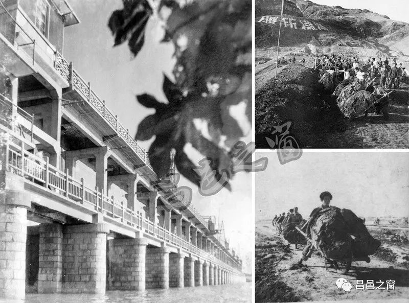 1951年,昌潍专署组织昌邑、昌南、寿光和安丘等县民工13万,修筑潍河大堤124公里,其中昌邑段104.6公里,河道裁弯取直7,5公里。(上图:民工在修堤打夯)