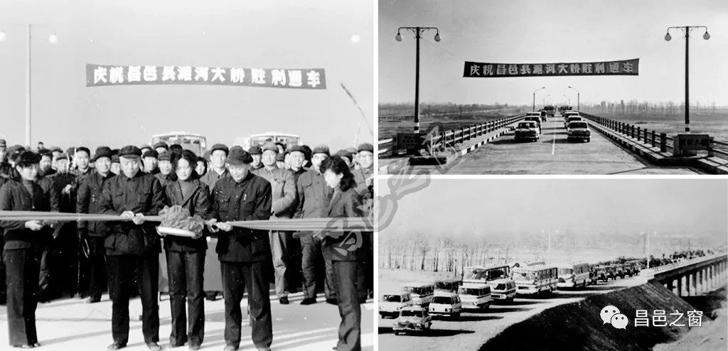 1983年12月,潍河大桥(今交通街大桥)建成通车,潍坊市公路段书记姜克成同志(前排左二)和昌邑县委书记刘洪仁同志(前排右二)为潍河大桥通车剪彩。