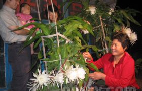 同生农家不同龄 两株昙花同时开, 9月15日子时,在昌邑市都昌街道徐逄社区