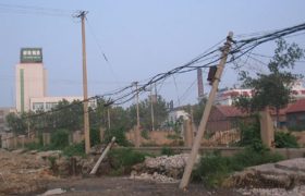 油罐车挂倒电线杆 局部停电信号中断, 8月11日下午约4点半,在昌邑市岩
