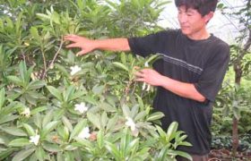 非洲茉莉在昌邑开花, 近日,在昌邑市金丝达经济园内,工作人员正