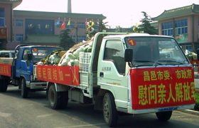 昌邑慰问驻昌军队, 6月19日上午8时许,七辆满载