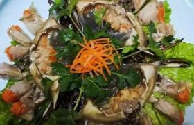 石榴黄咸蟹子 石榴黄咸蟹子是昌邑北部的特色菜。中秋节后,蟹壳满肉肥,谓之“顶盖肥”,是一年中食蟹的最佳时节。雌…