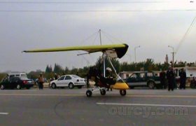 三角翼飞机从烟汕路起飞航拍昌邑, 10月10日,一