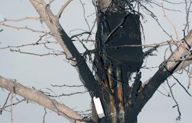 喜雨造成电短路,路旁银杏树被烧, 2月27日,本站