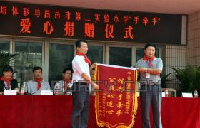 潍坊体彩与昌邑二实小举行“手牵手”爱心捐赠仪式,<IMG border=1 hspace=5 alt=