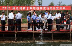 2012潍坊城镇水系增值放流活动在潍河湿地公园举行