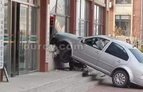 城南发生离奇车祸 轿车爬上窗子,<div style="text-align: center