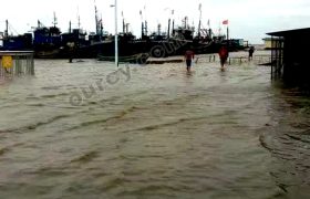 下营遭遇风暴潮 水漫码头沟满濠平,<div style="text-align: center