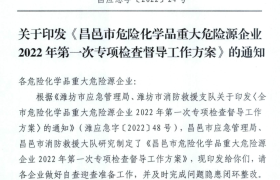 为细化落实全市安全生产大检查、危险化学品安全生产专项检查的重点措施,严密管控重大危险源安全风险,根据《潍坊市应…