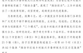 近日,中共潍坊市委、潍坊市人民政府联合发布《关于表彰打造乡村振兴齐鲁样板先行区示范集体的通报》,龙池镇获评“潍…