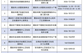 根据当前疫情防控工作需要,为方便昌邑市民就近及时核酸采样检测,现将我市24小时服务“愿检尽检”采样点名单公布如…