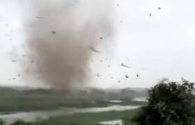 龙卷风突袭昌邑北部沿海掀翻鱼棚,<iframe widt